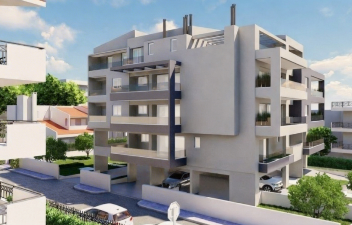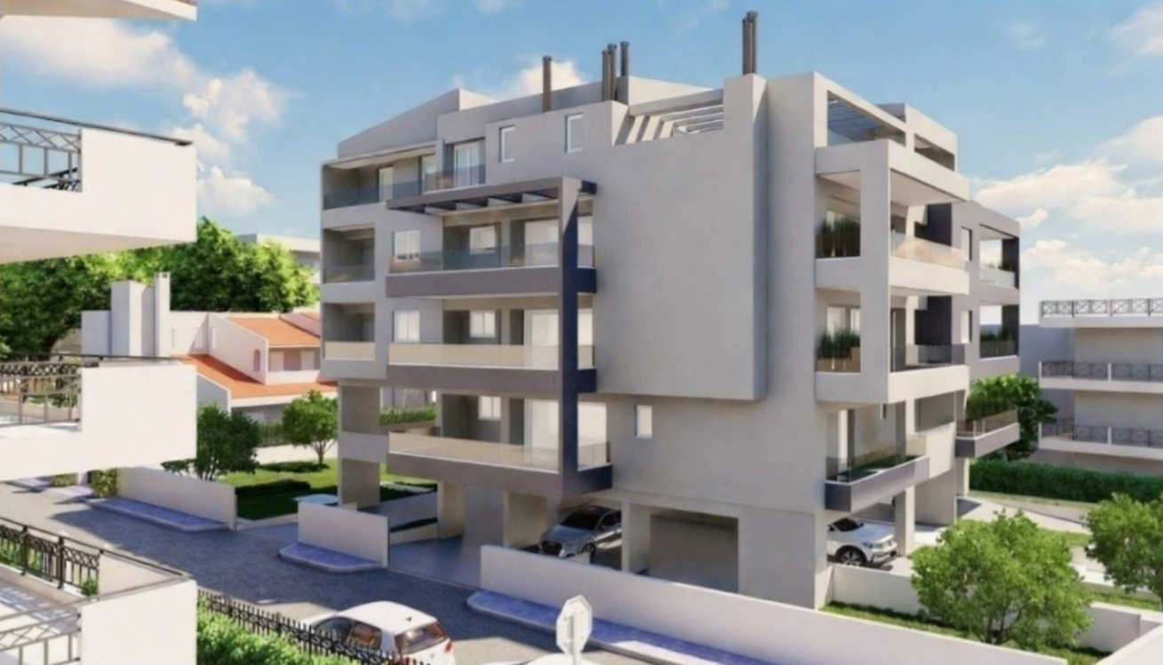 Διαμέρισμα 99τ.μ. 2ου ορόφου, υπό κατασκευή, με βεράντα 25τμ, μοντέρνου αρχιτεκτονικού σχεδιασμού και με όλες τις σύγχρονες προδιαγραφές, με κοινόχρηστα φωτοβολταικά συστήματα, ενεργειακής κλάσης Α+. Το διαμέρισμα αποτελείται από ενιαίο χώρο υποδοχής σαλονοτραπεζαρίας, open plan κουζίνα, 2 υ/δ εκ των οποίων το 1 master με en suite λουτρό και ακόμα ένα μπάνιο. Διαθέτει επίσης εξωτερική θερμοπρόσοψη, κουφώματα θερμοδιακοπής, αυτόνομη ενδοδαπέδια θέρμανση με αντλία θερμότητας, προεγκατάσταση κλιματισμού και συναγερμού, αποθήκη και θέση στάθμευσης υπογείου.
